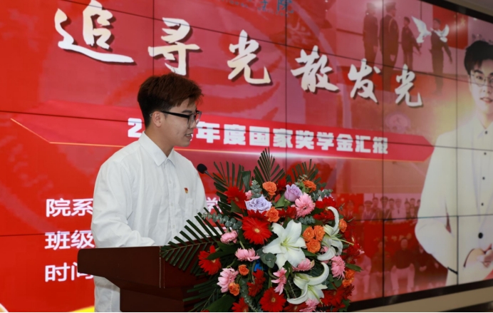 “向光而行,践行初心使命;追寻榜样,汲取奋进力量!”为充分发挥国家奖学金获奖者的榜样引领作用,激励广大学子砥砺奋进,同时进一步宣传国家相关资助政策,倡导优良学风,树立模范榜样,4月25日,我校隆重举行2022-2023学年度国家奖学金颁奖典礼。党委书记李飞、纪委书记黄超、党委委员周剑波等领导出席本次活动。