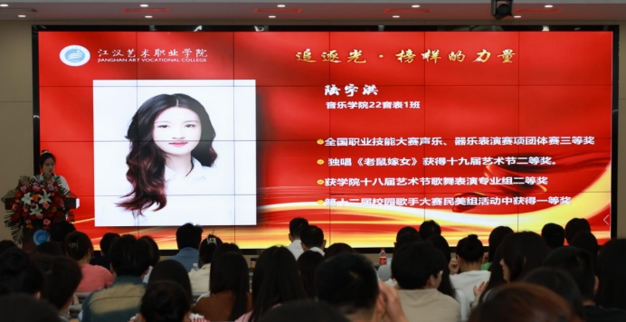 优秀学生代表发言,表达了获奖的喜悦和对学校的感恩。“将向获奖同学学习,继续努力,学知识、强技能,为成为德艺双馨、庄敬自强的当代大学生而努力奋斗!”在场学生们纷纷表示。