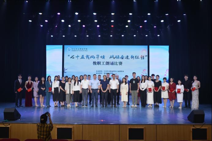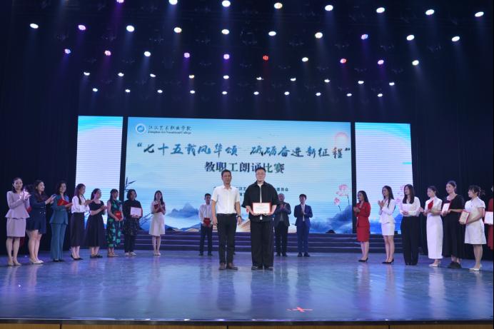 为庆祝中华人民共和国成立75周年,丰富教职工精神文化生活,增强教职工凝聚力,4日晚,学校工会在风华楼剧场成功举办“七十五载风华颂 砥砺奋进新征程”教职工朗诵大赛。院长程伦嵩、副院长廖江涛、工会主席李伟、党委委员周剑波参加活动。