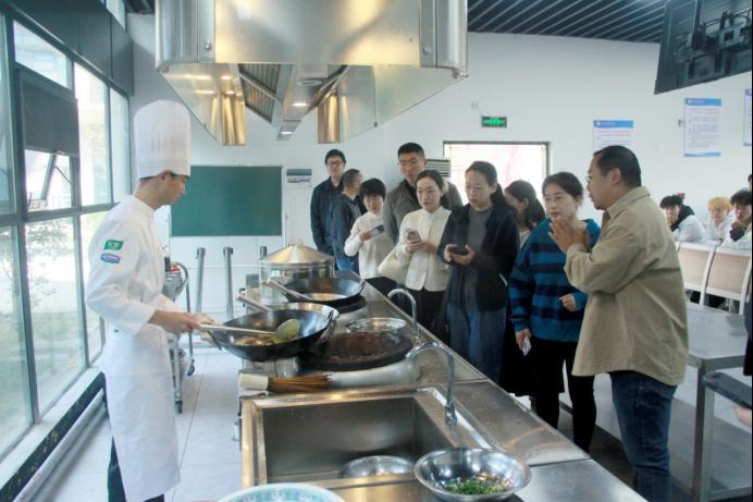 在廖江涛副校长的陪同下,调研组一行参观了潜江龙虾学院咖啡实训室、烹饪理实一体实训室、烹饪实训室,走访了直播电商产教融合实践中心,仔细观摩了师生实训场景,了解我校办学特色。