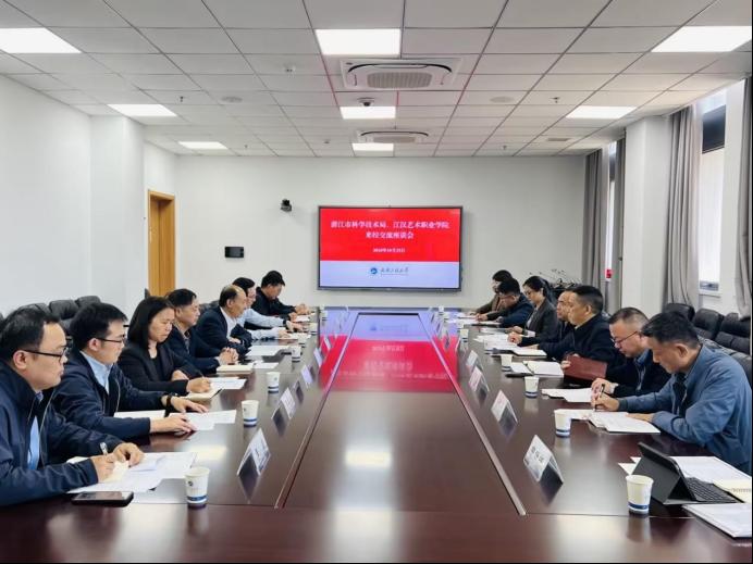 10月25日下午,一场聚焦职普融通、产教融合,旨在深化服务地方重点产业专业建设的座谈会在武汉工程大学顺利举行。武汉工程大学党委常委、副校长喻发全,潜江市科技局党组书记、局长尹征,江汉艺术职业学院党委副书记、校长程伦嵩出席座谈会。武汉工程大学与江汉艺术职业学院就校校合作进行了深入交流和探讨。