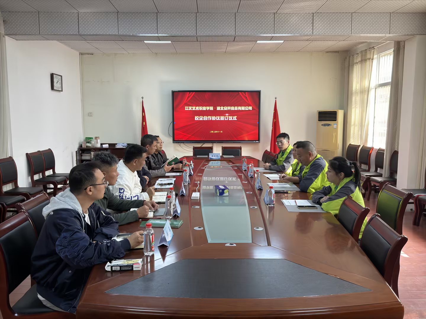 本网讯(通讯员 关岛 党宣于 党宣李)为进一步深化产教融合,以产业园区为基础,创新人才培养模式,11月5日,我校与湖北安井食品有限公司举行校企合作签约仪式。院长程伦嵩,副院长廖江涛,院务委员周红军等出席参加,龙虾产业学院、后勤处、就业创业指导中心有关负责同志参与签约仪式。