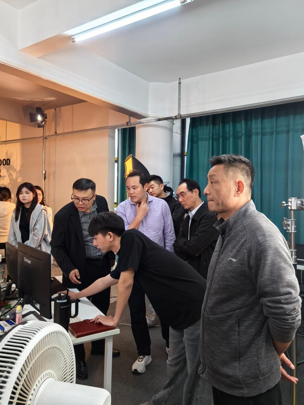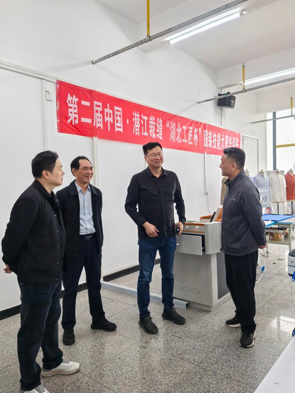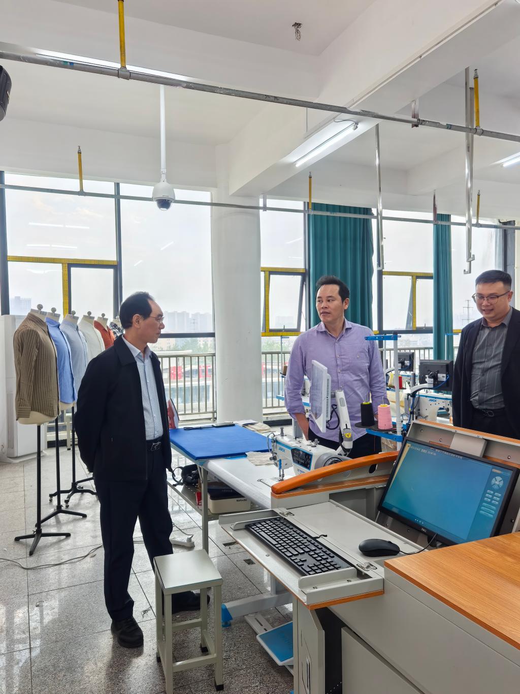 黄衍祥一行先后走访了服装学院数字化缝纫一体实训室、风禾传媒有限公司、湖北卓昕服饰有限公司校企共建抖音直播间。