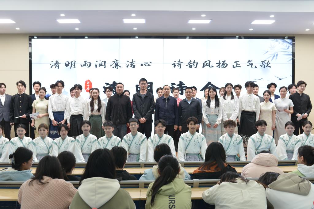 “在清明诗会排练中,我们通过诗词沙龙加深理解,让最终呈现的节目不仅是表演,更是一场跨越时空的文化对话。我们当代大学生要主动用创新表达活化传统文化基因,更要带着文化自觉扎根社会实践,在乡村振兴、社区服务中创造有当代价值的青年文化样本,让传统文化真正融入时代脉搏。”学生高鸣灿说。
