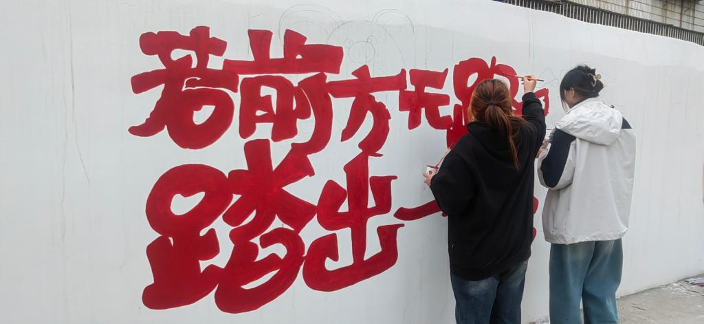 现场,学生们正专心致志地以墙为布、以笔为媒,绘制着精彩的哪吒图案,灵动的身影、坚毅的眼神,在墙上栩栩如生。每一笔线条,每一抹色彩,都倾注着学子们对艺术的热爱。 白色的墙面上,还有各式标语充满朝气,传递着正能量。路过的市民关先生不禁赞叹道:“以前这里就是一面红砖墙,有的地方还有破损,画上墙画后,真是眼前一亮。”