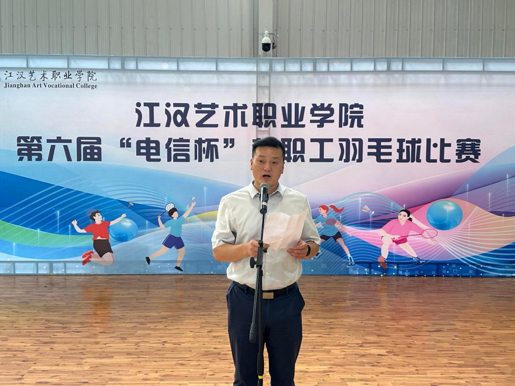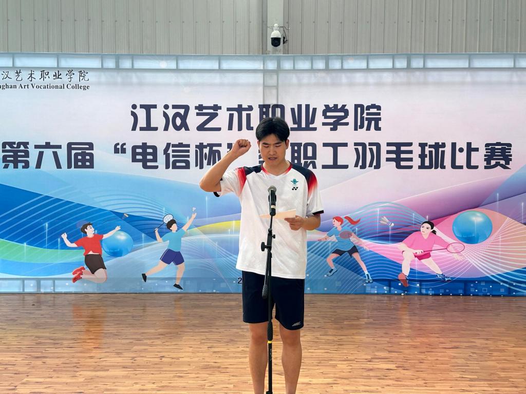 本网讯(通讯员 张静静 党宣李)4月27日晚,在学校体育馆内,第六届教职工羽毛球比赛开幕式隆重举行。校领导廖江涛、刘晖、李伟等出席开幕式,与来自全校各单位的运动员、裁判员及工作人员齐聚一堂,共同开启这场精彩纷呈的体育赛事。