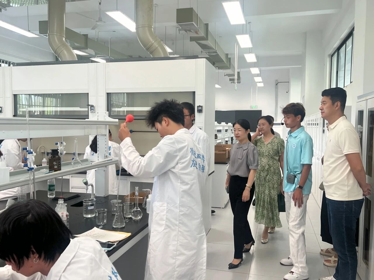 会后,企业代表在校方陪同下参观了绿色化工产业学院化学实验室,24级应用化工专业许忠林同学担任现场解说。期间深入化工专业课堂,与上课学生展开亲切交流,了解同学们的学习情况和职业规划。