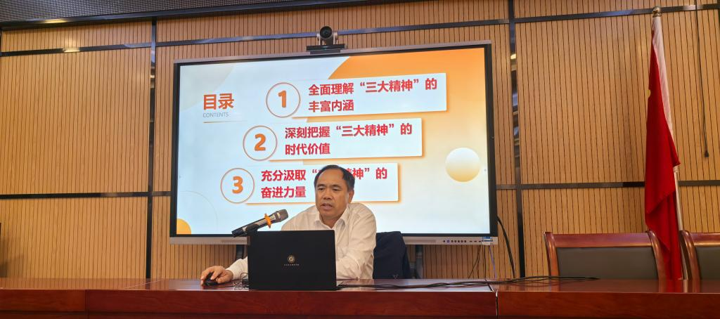 程伦嵩系统阐释了大别山精神、抗洪精神、抗疫精神的历史脉络、精神内核与时代价值。他指出,“三大精神”虽然形成于不同历史时期,但都共同体现了“坚定理想信念、坚持党的领导、坚守初心使命、坚持团结奋斗”的精神内核,是湖北人民在革命、建设、改革和发展进程中形成的宝贵精神财富,是中国共产党人精神谱系的重要组成部分,是实现中华民族伟大复兴的强大精神力量。