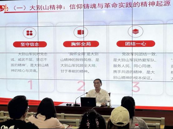 李书记围绕大别山精神、抗洪精神、抗疫精神,从历史脉络、科学内涵与时代价值三个方面,结合职业教育发展趋势和湖北“支点建设”战略任务,系统阐释了“三大精神”对学校高质量内涵式发展的启示。他指出,要把“坚守信念、胸怀全局、团结一心、勇当前锋”的大别山精神转化为推动学校“新双高”建设的内生动力;把“万众一心、众志成城”的抗洪精神融入立德树人全过程;把“生命至上、尊重科学”的抗疫精神贯通到课堂教学、科研攻关与社会服务各环节,持续增强育人实效。