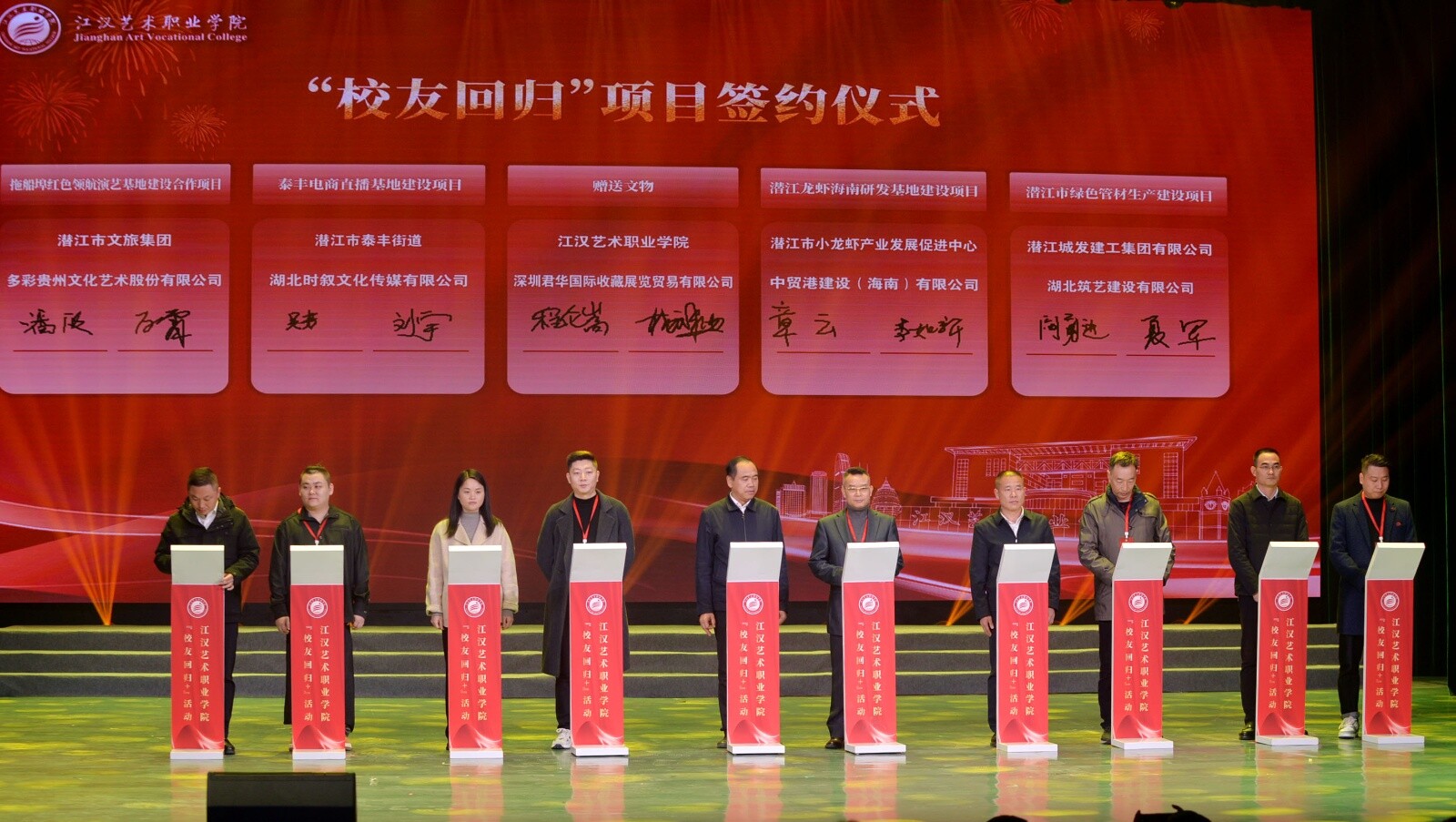 “活动的成功举办,凝聚起校地协同、校友同心的发展合力。”党委书记李飞表示,下一步,学校将持续深耕校友资源、做强校友平台,积极推动“校友+智力、科技、项目、企业、教育”专项行动,推动科教资源向创新优势、人才优势、发展优势转化,为潜江在服务支点建设中勇当标杆提供有力支撑。学校近年来紧密对接潜江石油化工、纺织服装、小龙虾等重点产业,积极打造特色产业学院,走出了一条“校地共生、向新而行”的特色发展道路。