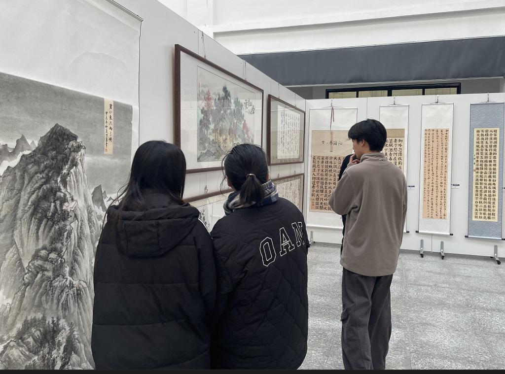 分享环节结束后,校友与师生共同参观了学生作品展。展览汇聚了书画、服装设计、美术设计等多类作品,创意丰富、技艺扎实,充分展现出设计学子蓬勃的艺术创造力与专业潜力。