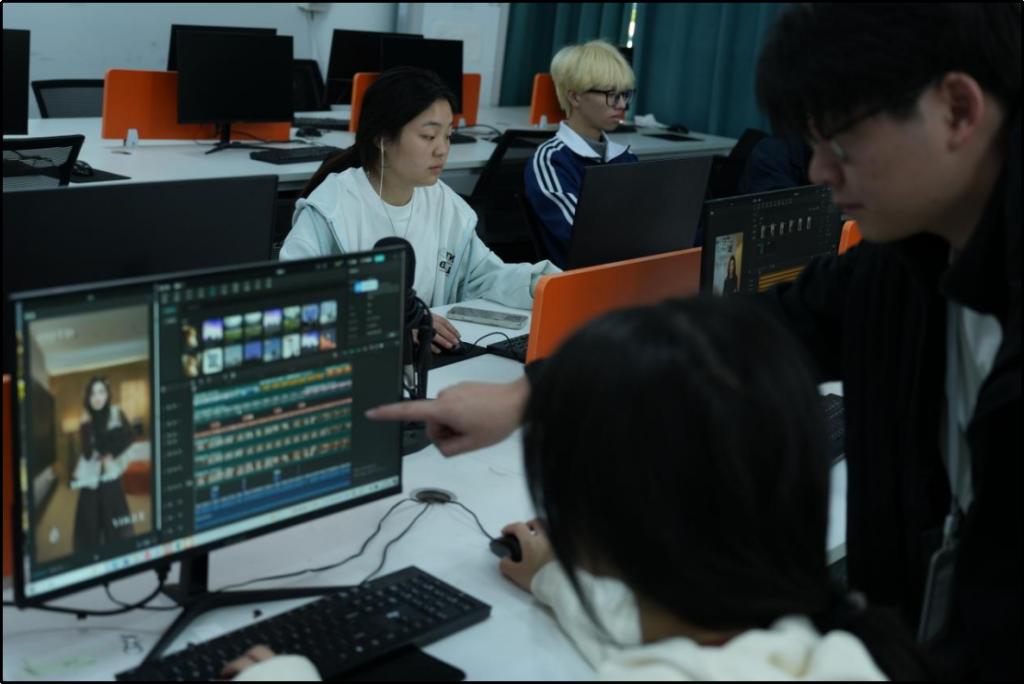 与此同时,女装达人切片工作室里,键盘敲击声此起彼伏。网络直播与运营订单班学生杨乐正对着电脑逐帧调整视频:“达人切片看似简单,实则要精准捕捉达人的穿搭风格、说话语气,还要让产品卖点自然融入。” 他展示着刚完成的作品,视频中达人的穿搭镜头与女装细节特写无缝衔接,配上符合年轻群体审美的背景音乐和字幕注解。杨乐介绍,课堂上学习的 “短视频剪辑技巧”“用户画像分析” 是基础,但真正实操后才发现,“要研究不同达人的粉丝偏好,比如通勤风达人适合推基础款女装,甜酷风达人则要突出设计感,细节把控直接影响转化效果。”
