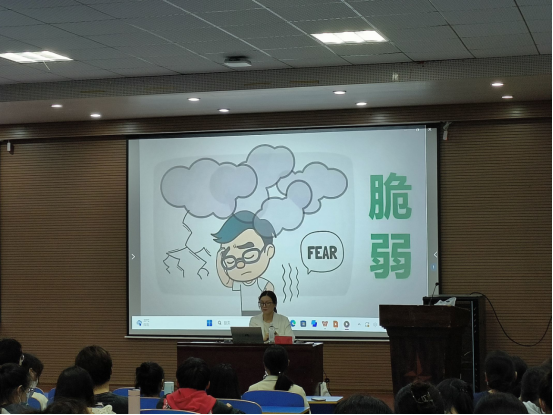 刘濛老师就“在学习压力下会产生什么样的情绪?”开展谈论,很多同学表示在压力下会产生焦虑、抑郁、绝望等负性情绪。刘濛老师从情绪的作用、情绪与健康的关系出发引导学生科学认识情绪。