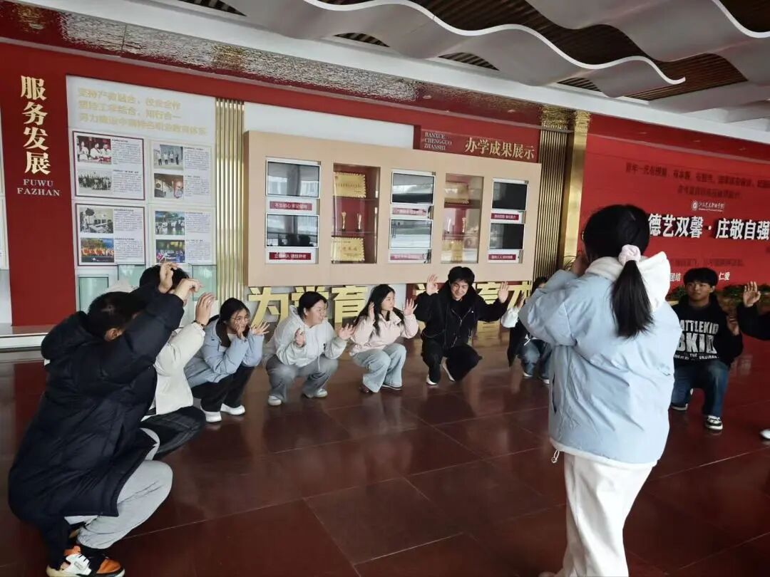 随后的“部长说”游戏环节,考验的不仅是成员们的聆听能力,更是对规则的执行力。当 “部长说‘蹲下’” 时,大家迅速执行;而当指令没有 “部长说” 前缀时,同学们则稳稳站立、纹丝不动。随着带领人加快指令速度、使用相似指令增加难度,现场不时传来因判断失误而发出的笑声,但成员们始终认真参与,仔细分辨每一个指令,只执行带有 “部长说” 的动作,现场氛围既紧张又活泼。
