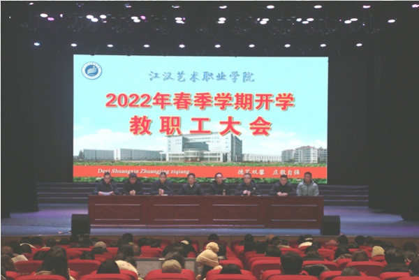2月18日,江汉艺术职业学院2022年春季学期教职工大会在风华剧场举行,全体教职员工500余人参加活动。