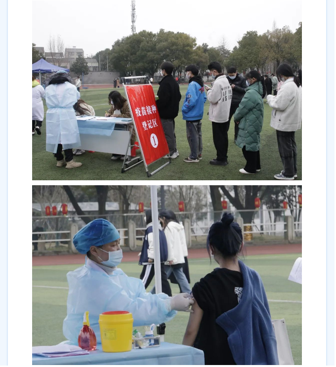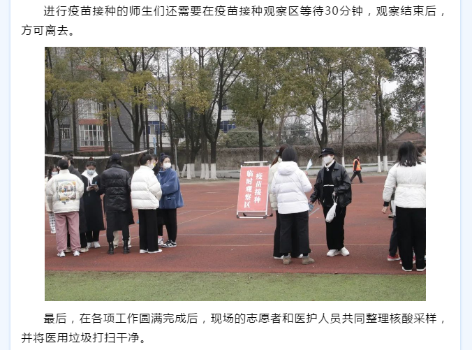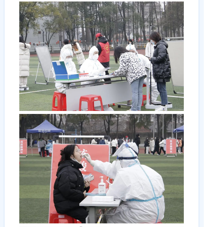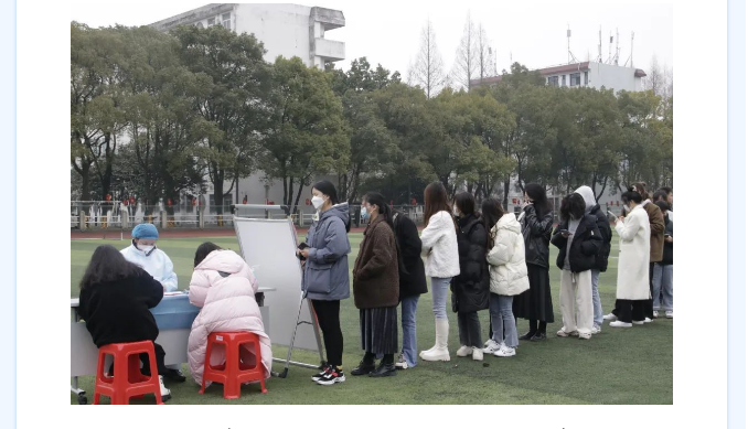 为进一步做好开学疫情防控工作,开学以来,江汉艺术职业学院全体外省返校师生数次在操场进行核酸检测,并为未接种第三针疫苗的老师、同学进行疫苗接种。多个部门协调配合,组织工作井然有序。