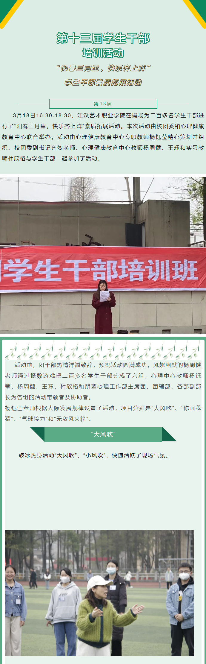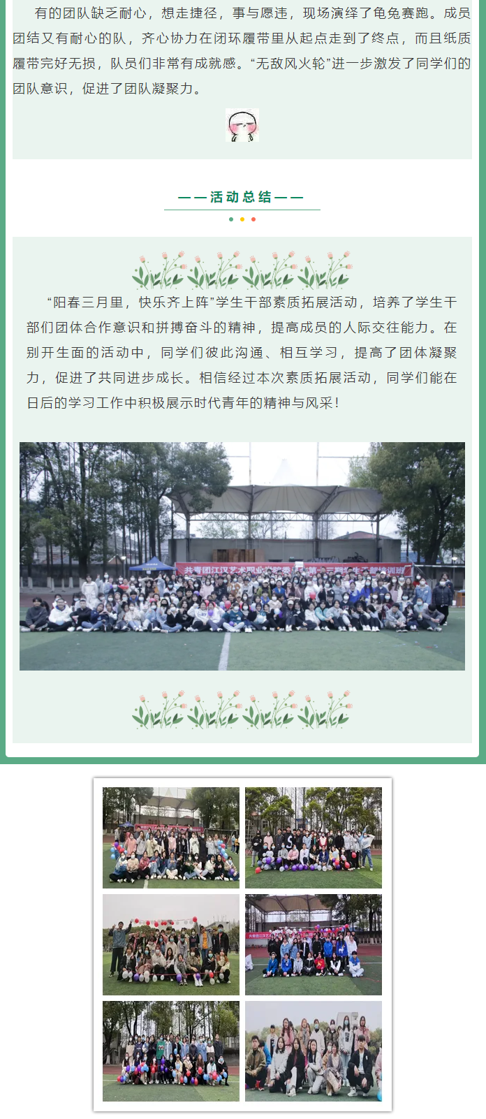 “阳春三月里,快乐齐上阵”学生干部素质拓展活动