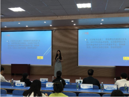 情景模拟环节中,围绕“你身为学校的学生会会长,即将负责安排开展‘十佳歌手大赛’,这项活动作为学校重要文化活动需要各部门协调参与,但在活动安排部署会议上你发现某些部门工作态度整体都较为懈怠,你该如何处理这种情况”这一话题,选手陈慧从存在的问题着手,分析问题,并提出解决的措施,条理清晰,逻辑性强,其他选手也妙语连珠、精彩不断。