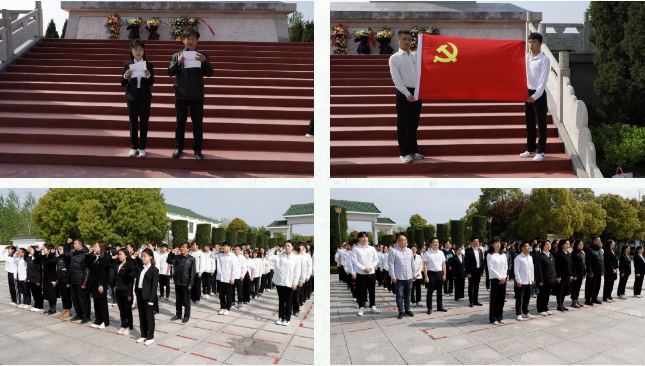 活动现场,全体人员庄严肃穆、队列整齐。在革命烈士纪念碑前,预备党员代表领唱《英雄赞歌》向革命先烈鞠躬默哀3分钟,并向革命烈士纪念碑敬献鲜花,表达对革命烈士的崇高敬意和深切哀思。