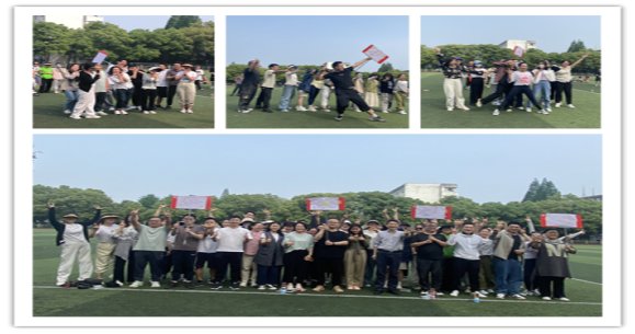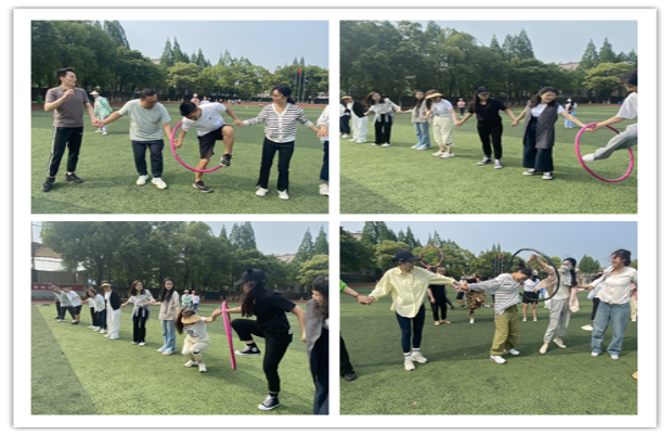 各队争先恐后,场面颇为激烈。镇定指挥的,焦急催促的,紧张出错的,还有任别人如何焦躁提醒都遵规守则泰然自若的......操场上,老师们一个个如孩童般,无拘无束释放情绪,大有再度童年的愉悦和兴奋。