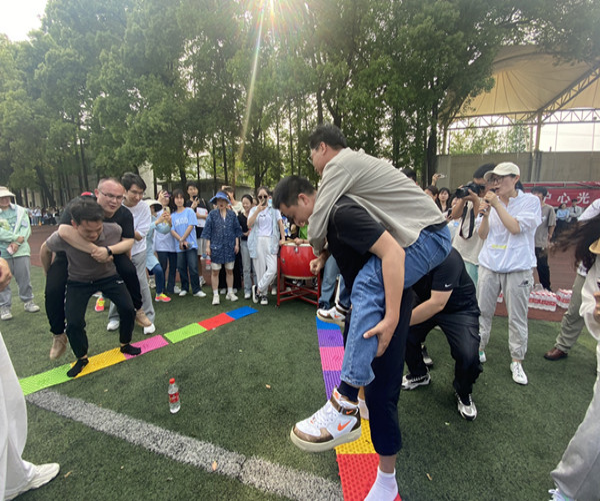 为贯彻落实党的二十大精神,加强高校辅导员队伍建设,进一步增强辅导员队伍凝聚力和团队精神,加强辅导员的职业认同感、荣誉感和归属感。4月21日下午,江汉艺术职业学院在田径场举办了“守护心光 聚力前行”辅导员素质拓展活动。本次活动由学工部心理健康教育中心策划组织,全体辅导员共同参与。校党委委员周剑波、学工部部长杜继锋、各二级学院负责学生工作的副书记、副院长和心理中心副主任刘濛参加了本次活动。