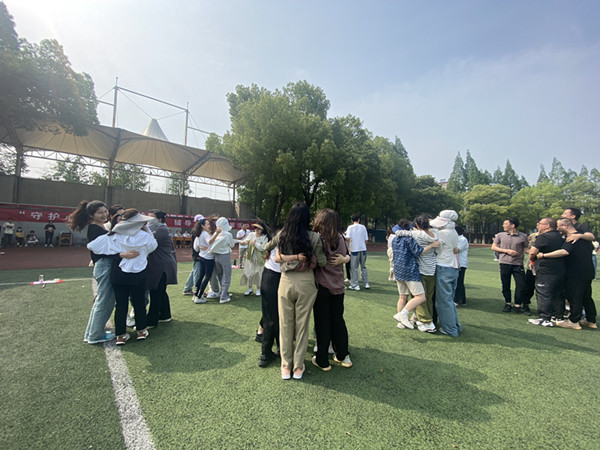 紧接着,由心理健康教育中心专职教师杨周健带领大家进行热场项目“爱的抱抱”。杨老师昂扬饱满的情绪,富有感染力和号召力的语言激发了辅导员参与的兴致和热情。大家紧张并热烈地按他的数字提示迅速组合,唯恐落单,呼唤声、欢笑声响成一片。老师们时而两两相拥,时而三五成群,时而七八为组,最后按杨老师的提示自由组成了四个小队。