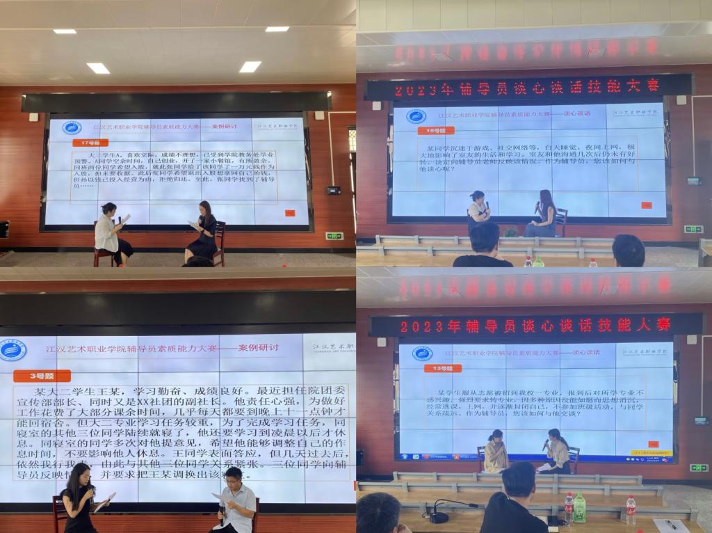 为深入学习贯彻习近平新时代中国特色社会主义思想,全面落实党的二十大精神,不断提升我校辅导员的理论水平、职业能力和专业素养,推动辅导员队伍建设职业化、专业化发展。近日,江汉艺术职业学院党委学生工作部在综合楼200教室举行了第十届辅导员素质能力大赛暨辅导员育人故事分享会。江汉艺术职业学院党委委员周剑波、学工部部长杜继锋、副部长刘思奇、副部长郝艳亮及学工部全体成员、各院部学工领导、全体专兼职辅导员现场观摩了决赛。