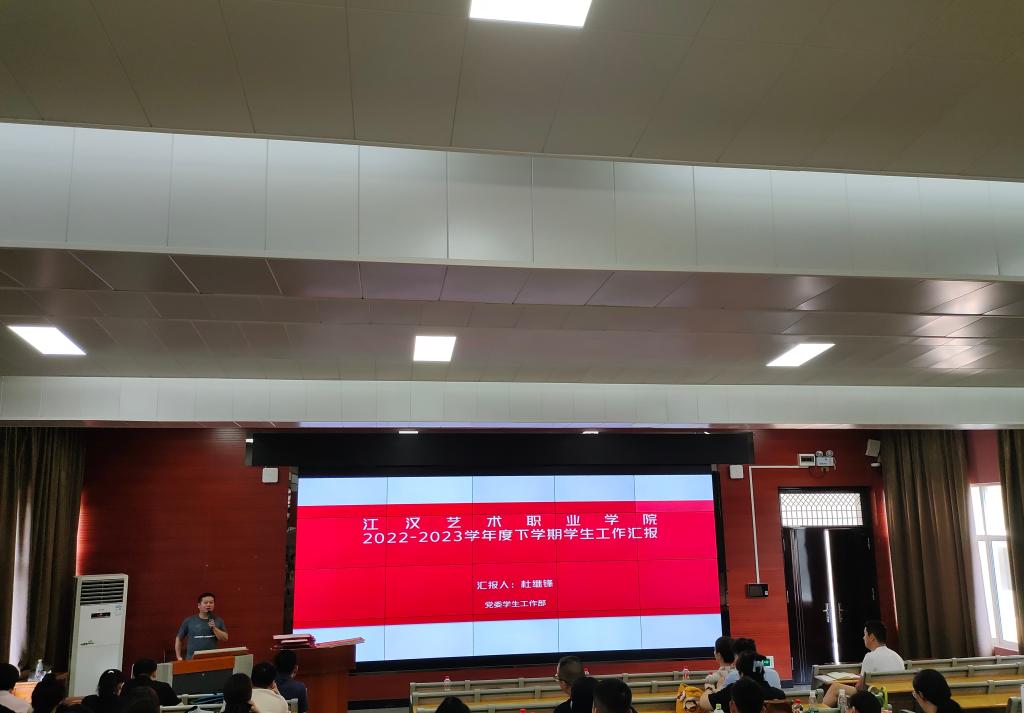 7月3日,江汉艺术职业学院党委学生工作部在综合楼200报告厅召开了22022-2023学年度下学期学生工作总结大会。学工部领导、各院部学工领导及全体专兼职辅导员参加了此次会议,会议由党委学生工作部部长杜继锋主持。