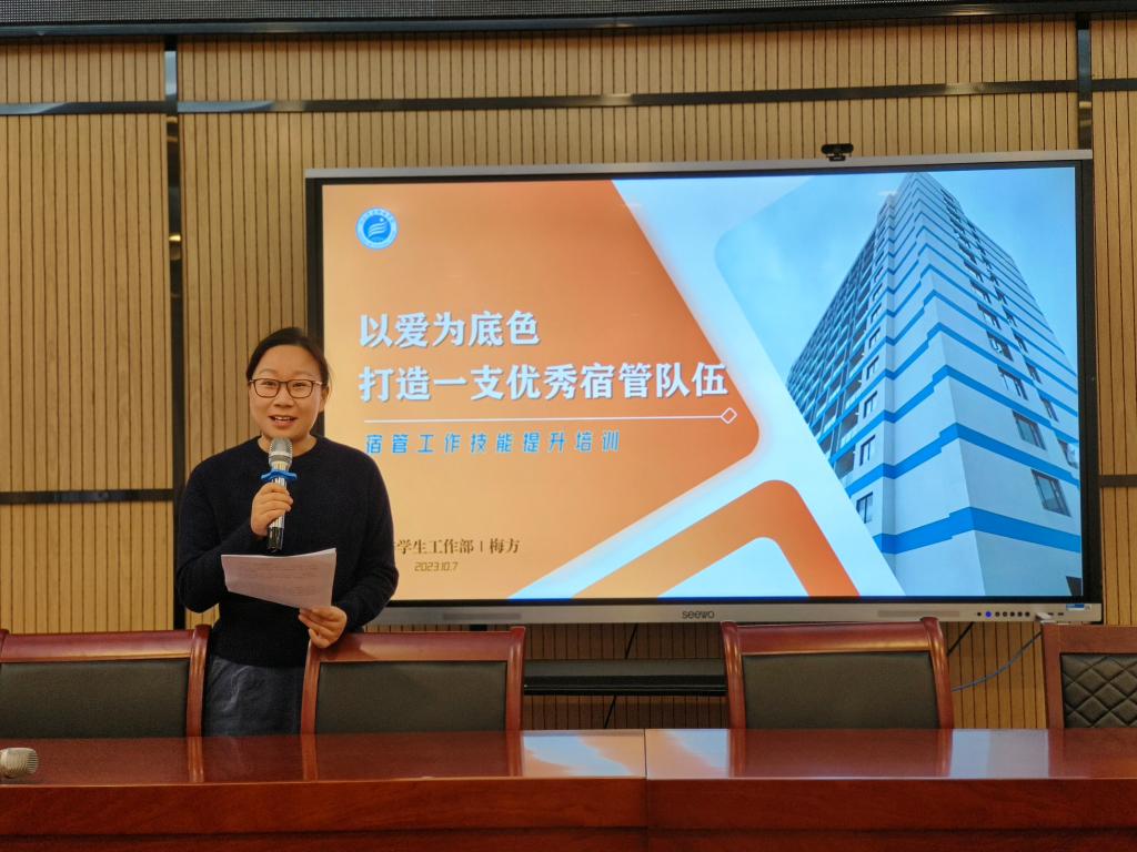 为了进一步提升学校的规范化管理水平,打造一支业务能力过硬、工作作风优良、服务保障高效的宿管队伍,10月7日下午,学工部在二楼会议室举行宿管员培训。学工部副部长梅方、刘濛出席培训。