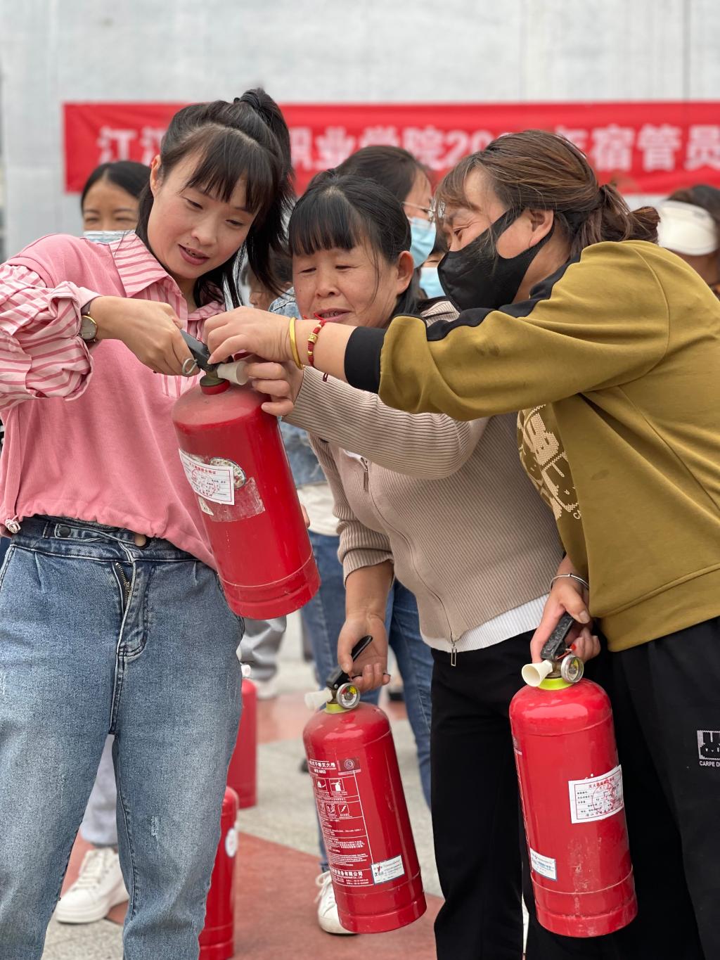 为夯实学校学生宿舍消防安全工作,提高宿管员安全防范意识,学校党委学工部宿管科于10月26日15:00在丰怡楼前举办了“2023年宿管员消防安全演练”活动。出席本次活动的人员有学工部部长杜继锋、保卫处处长葛新、学工部副部长梅方及全体宿管员。