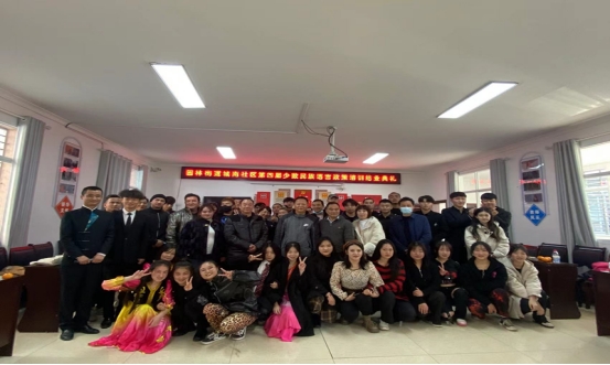 潜江市统战部、民宗局联合江汉艺术职业学院,借助高校教育教学资源,发挥少数民族专职辅导员、双语大学生、志愿者等优势,举办“少数民族务工人员语言文化培训班”,深入开展国家通用语言文字学习培训,切实提高务工经商少数民族同胞沟通交流能力。努力让务工经商少数民族同胞“听得懂”“说得出”“用得了”“过得好”,把习近平总书记重要指示精神和中央、省、市委决策部署转化为惠及少数民族进城务工经商人员的具体行动。