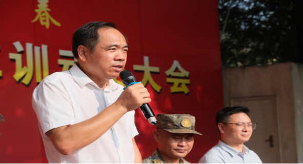 首先,党委委员周剑波向全体2024级新同学表示热烈的欢迎,向承担本次军训任务的全体教官致以崇高的敬意和衷心的感谢。“同学们,军训是大学生接受国防教育、爱国主义教育、集体主义教育、组织纪律教育、军事技能与军队优良传统教育的一门必修课程;是磨练意志的练兵场,是充满挑战的大舞台,让我们做好一切准备,以饱满的热情和坚强的毅力投入到此次军训当中去!”周党委激励同学们“要以实际行动向人民子弟兵学习,保持昂扬奋发的精神风貌,严格训练,用军人的标准来约束自己,认真完成军训项目,练就健康体魄,培养优良作风!”