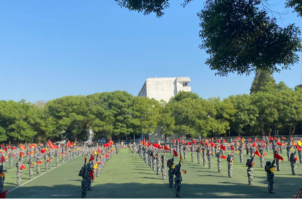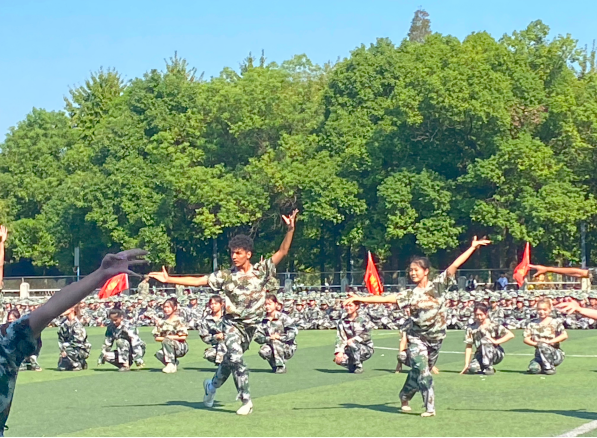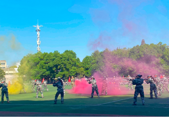 军训会操场面盛大,庄严神圣。操场上红旗猎猎,标兵就位,队列整齐有序、精神抖擞;分列式表演,各方阵步伐一致,生气勃勃;特色展示中,新生们轻盈腾空、敏捷跳跃,新颖别致的造型,展示了他们青春的激情与奋进风貌;拳术表演中,新生们动作迅猛如雷,刚劲昂扬,以拳为笔,以汗为墨,诠释着勇敢与担当;女子匕首方队,目光炯炯、口号响亮,铿锵玫瑰,刚柔并济;旗语方队,鲜艳的彩旗,规范有力的动作,饱含热情与专注,展示智慧与担当;战术方阵的表演,协同合作,精彩纷呈。创新方阵,走位精准、配合默契,令人惊叹的图案和造型,彰显着新时代青年的无限创意与蓬勃朝气。