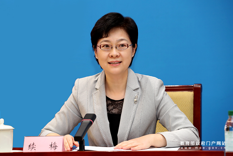 教育部新闻办主任、新闻发言人续梅主持发布会。(中国教育报记者 张劲松/摄)
