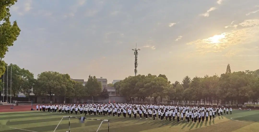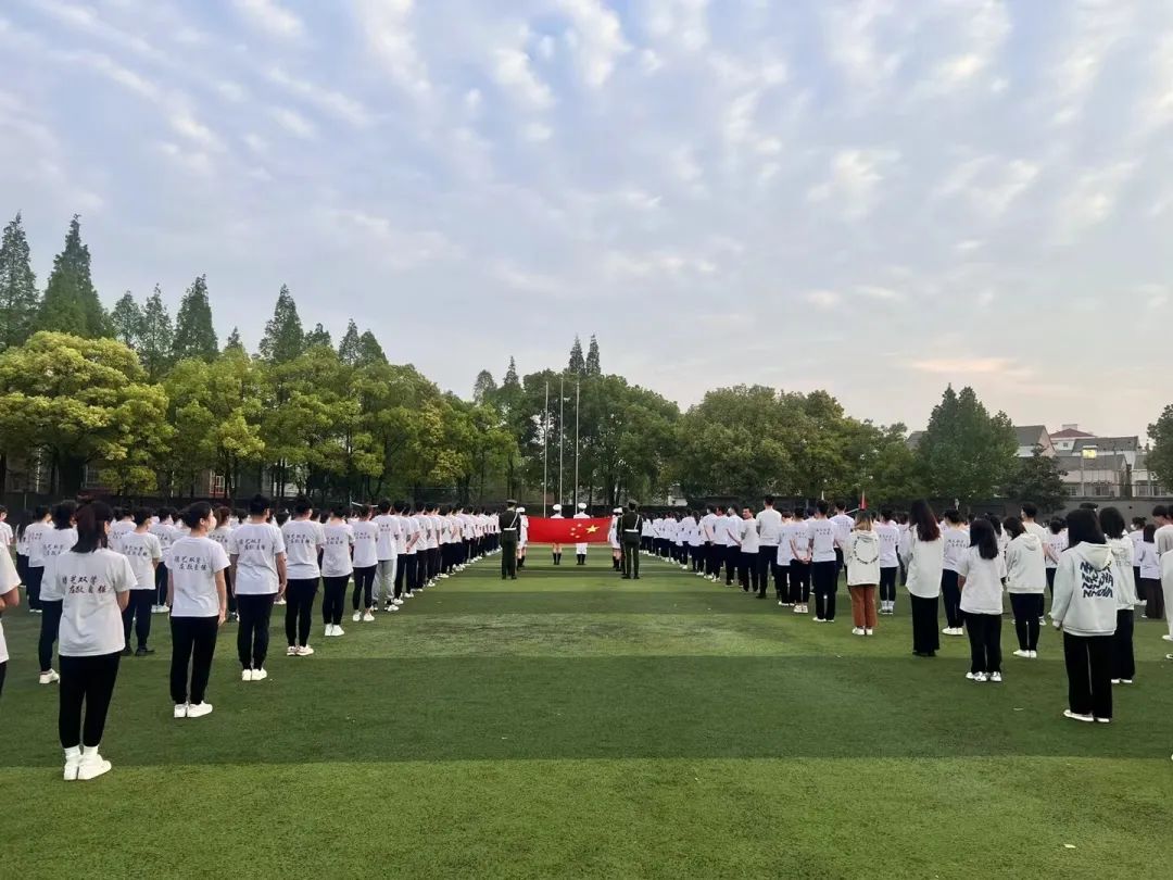 6点30分,升旗仪式正式开始。礼仪队迈着铿锵有力的步伐护送鲜艳的五星红旗进场,在雄壮、激昂的《义勇军进行曲》中,鲜艳、壮美的国旗迎着朝阳,冉冉升起。