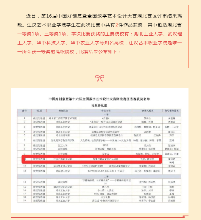 喜报 | 设计学院学生在第16届中国好创意大赛湖北省赛中喜获佳绩