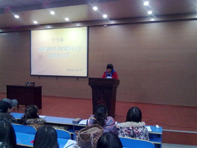 12月11日,中专部在八号学术报告厅举行了优秀见习生表彰大会。出席本次会议的领导、老师有:中专部张敏主任、邹蔚江副主任、王祖艳副主任、杨林副主任和中专部各班班主任。本次大会由王祖艳副主任主持。