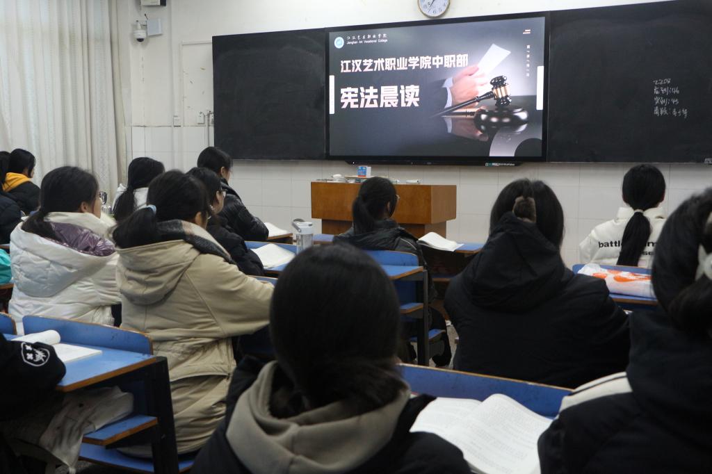 利用早自习时间,中职部22个班级,共计约1000名学生集中在教室以班级为单位进行宪法晨读。通过朗读宪法和讨论的方式,让学生了解宪法的基本知识和精神。
