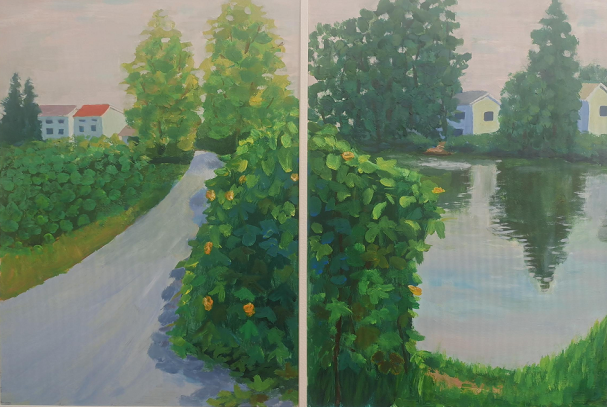 《村口》油画