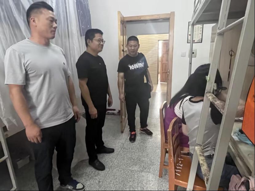 2023年9月2日,学校新学期开学在即,校纪委书记黄超、工会主席李伟率领保卫处人员专程前往我校学生宿舍,对学生入校各项工作进行检查督导,对校内安全保障、学生入住后的学习生活服务进行了细致考察。