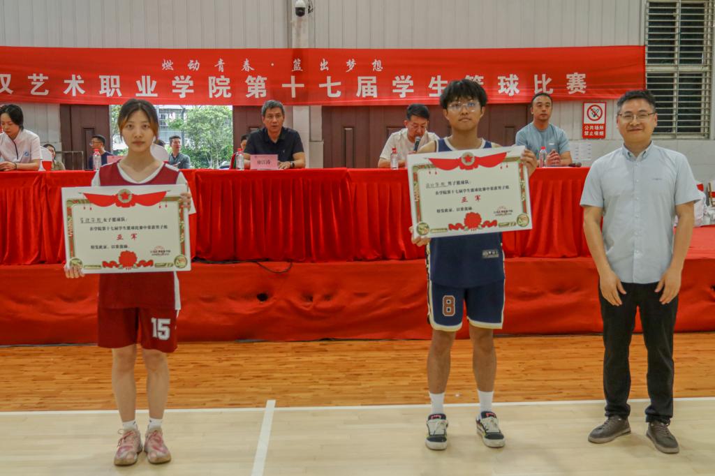 经过七天紧张激烈的角逐,各代表队展现了卓越的竞技水平和团队精神。最终,管理学院男子篮球队和学前教育学院女子篮球队凭借出色的表现摘得桂冠;设计学院男子篮球队和管理学院女子篮球队获得亚军;中职部男子篮球队和表演艺术学院女子篮球队获得季军。此外,潜江龙虾学院男子篮球队和音乐学院女子篮球队荣获精神文明代表队。大赛还评选出优秀运动员20名、优秀工作人员6名、优秀裁判员4名,以表彰他们在比赛中的突出贡献。