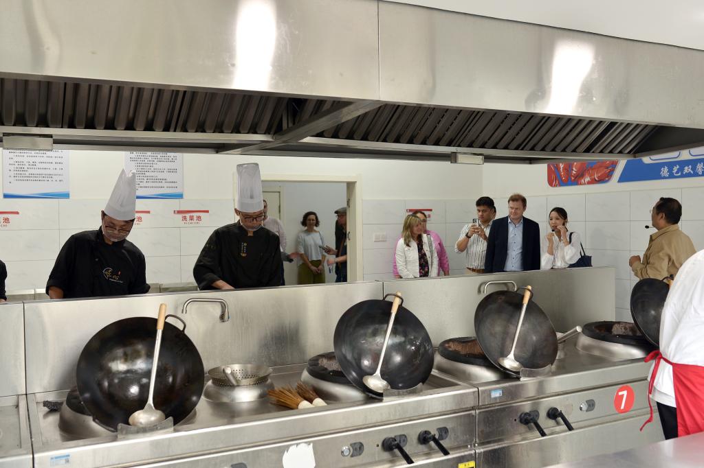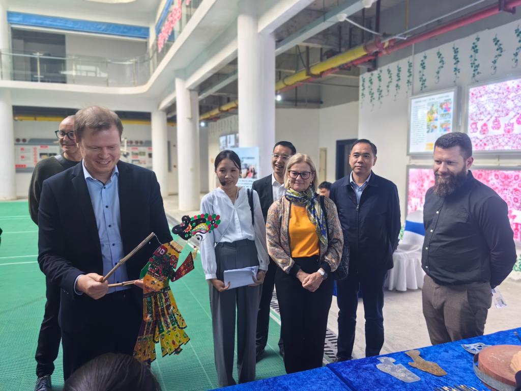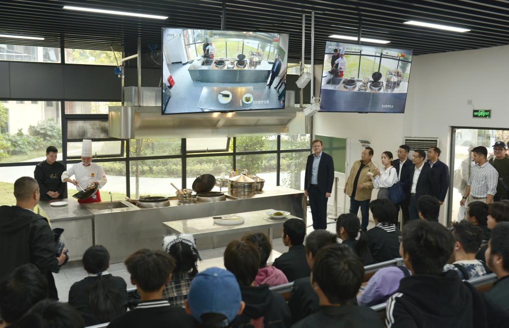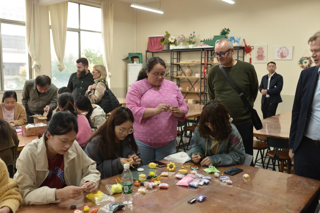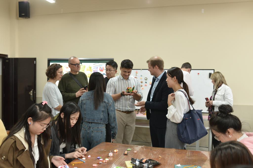 11月1日下午,德国海登海姆市迈克尔·萨洛蒙市长一行12人来我校调研。在调研期间外国友人参观了我校小龙虾烹饪实训基地、非遗传承中心和校史馆,观摩了我校民族舞教学、手工教学、服装缝纫教学、茶艺教学,观看了学校非遗文艺节目演出和小学教育专业师范生技能作品展。