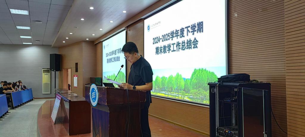 6月17日下午,我校在图书馆八号报告厅召开2024-2025学年度下学期期末教学工作总结会议,全面回顾本学期教学工作成果,部署下一阶段重点任务。会议由教务处副处长邵君主持。