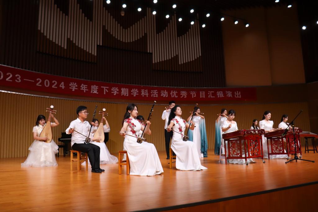 为进一步落实立德树人根本任务,培养学生专业核心素养,促进学生个性化发展,为广大学生搭建艺术实践平台,6月24日至25日我校2023-2024学年度下学期学科活动优秀节目汇报演出在学校风华楼剧场和音乐厅隆重举行。此次汇演活动共收到各类参演节目166个,经过重重选拔有89个节目入围此次汇演,其中声乐类节目24个,舞蹈类节目23个,器乐类节目30个,语言类节目12个。