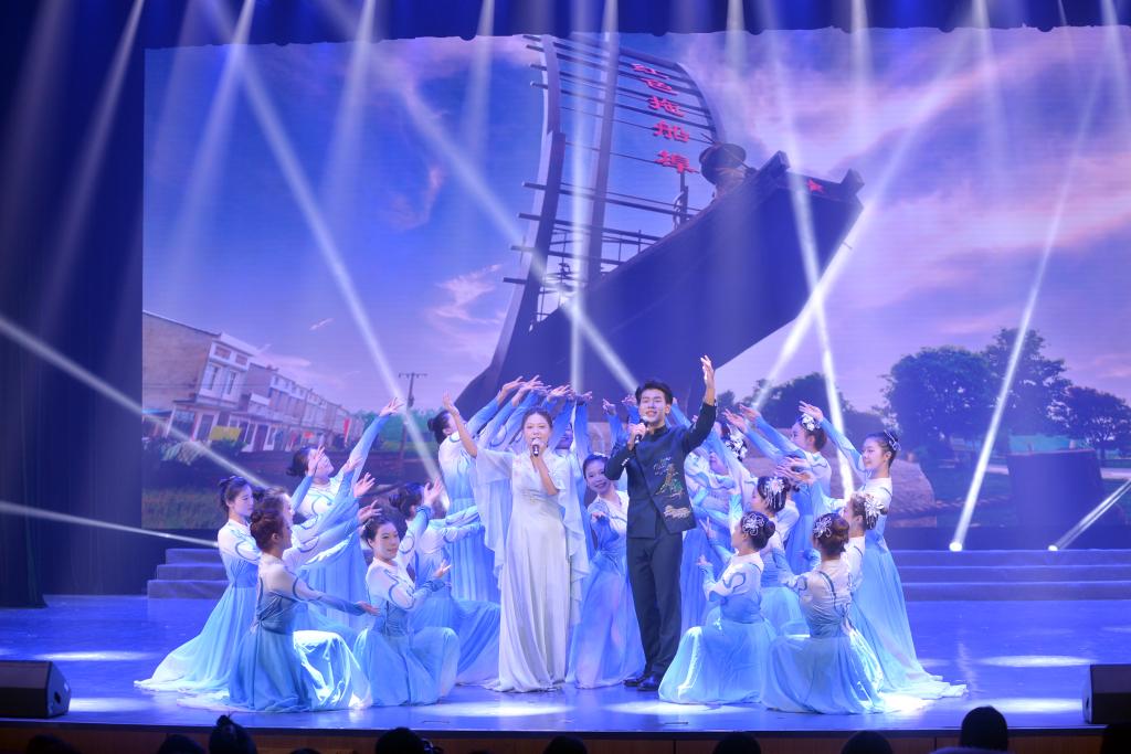 第二章:华彩·薪火相传。群舞《蜀女簪花落红颜》重现古典风韵,独唱《天上雾腾腾》展现乡土情怀,舞蹈《散乐图》活化历史画卷,歌舞《天下有个拖船埠》讴歌红色精神,彰显文化传承的生生不息。