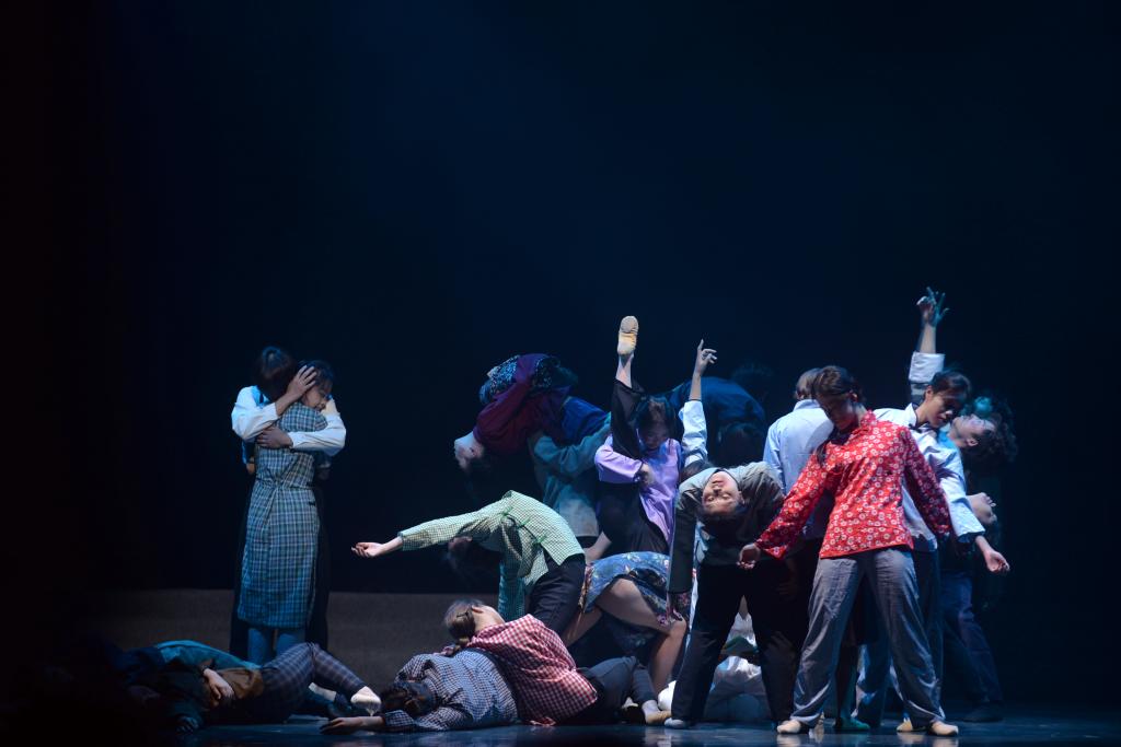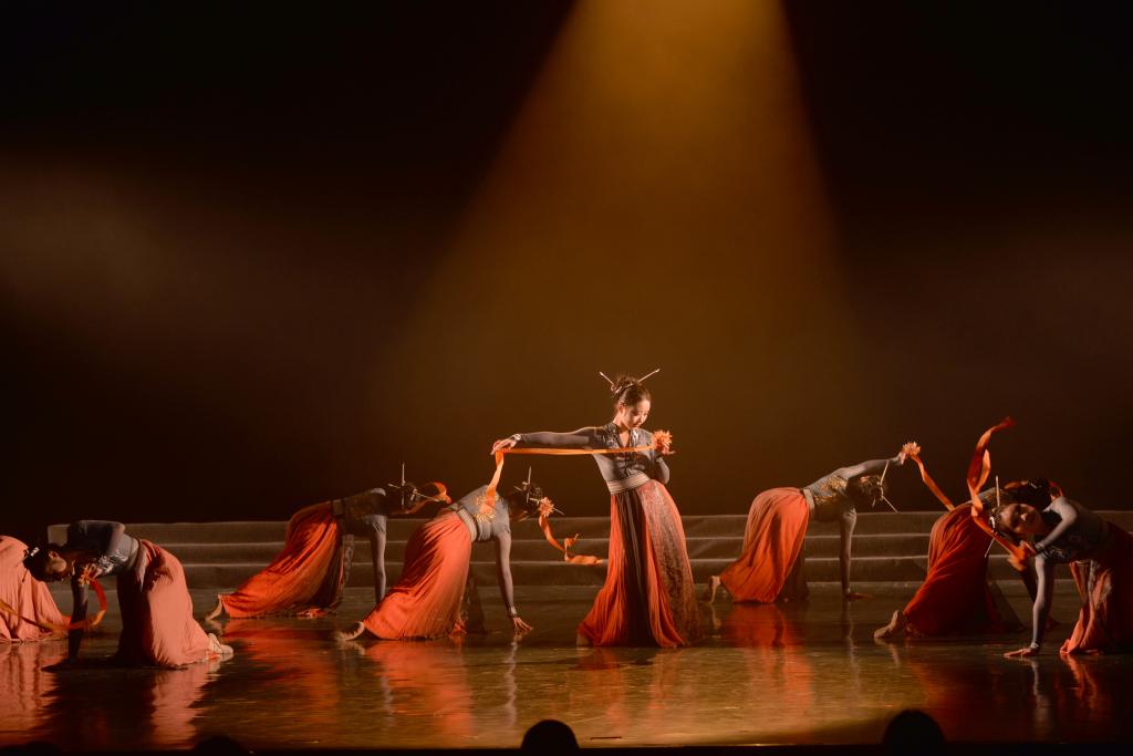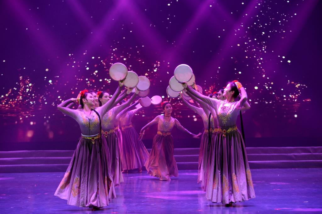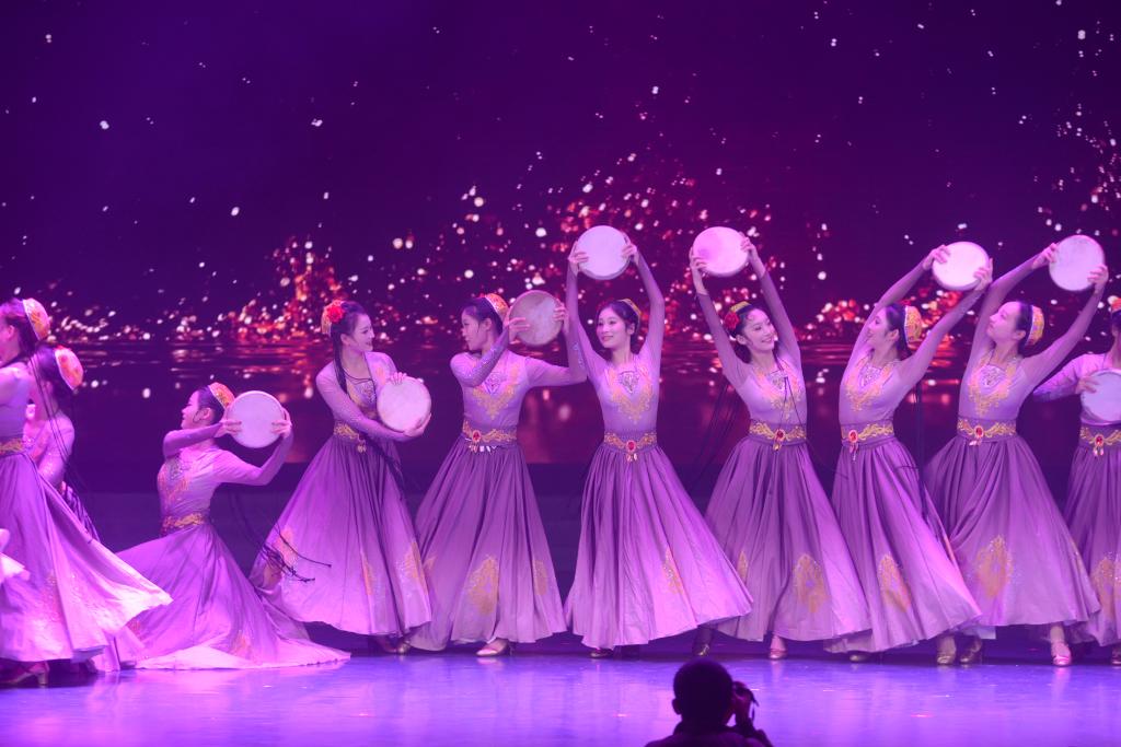 序章:鼓舞心弦·梦起江汉。群舞《鼓声响起的地方》以铿锵鼓点与豪迈舞步,展现江汉大地千年文脉,激荡起全场观众的澎湃心潮。