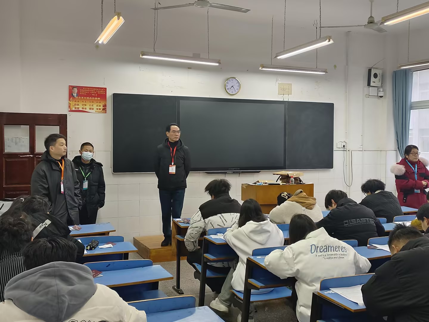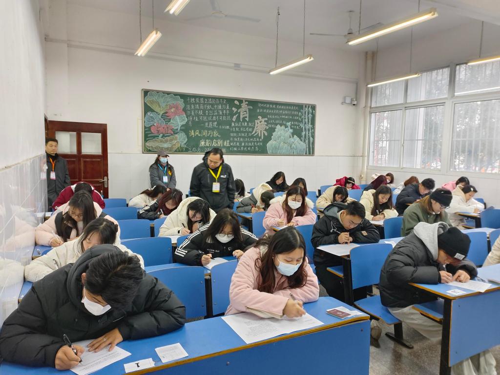 2024年1月16日至1月18日,我校2023-2024学年度上学期期末考试如期举行。此次考试学校领导给予了高度重视,考试期间学校党委书记李飞,学校党委副书记、校长程伦嵩,学校党委委员、工会主席李伟,学校党委委员周剑波亲临考点,并对各考场学生考试情况进行巡视。