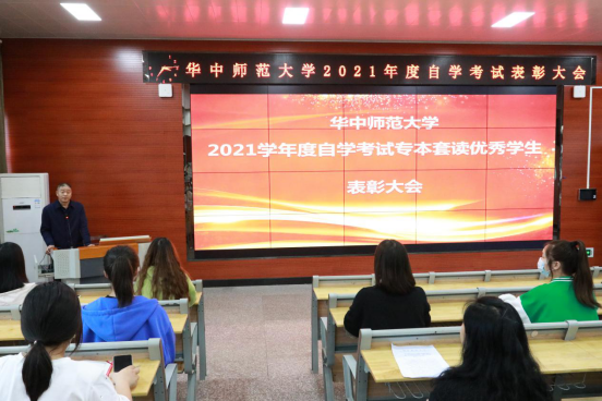 4月28日下午,我院在综合楼200隆重召开华中师范大学2021年度自学考试表彰大会。