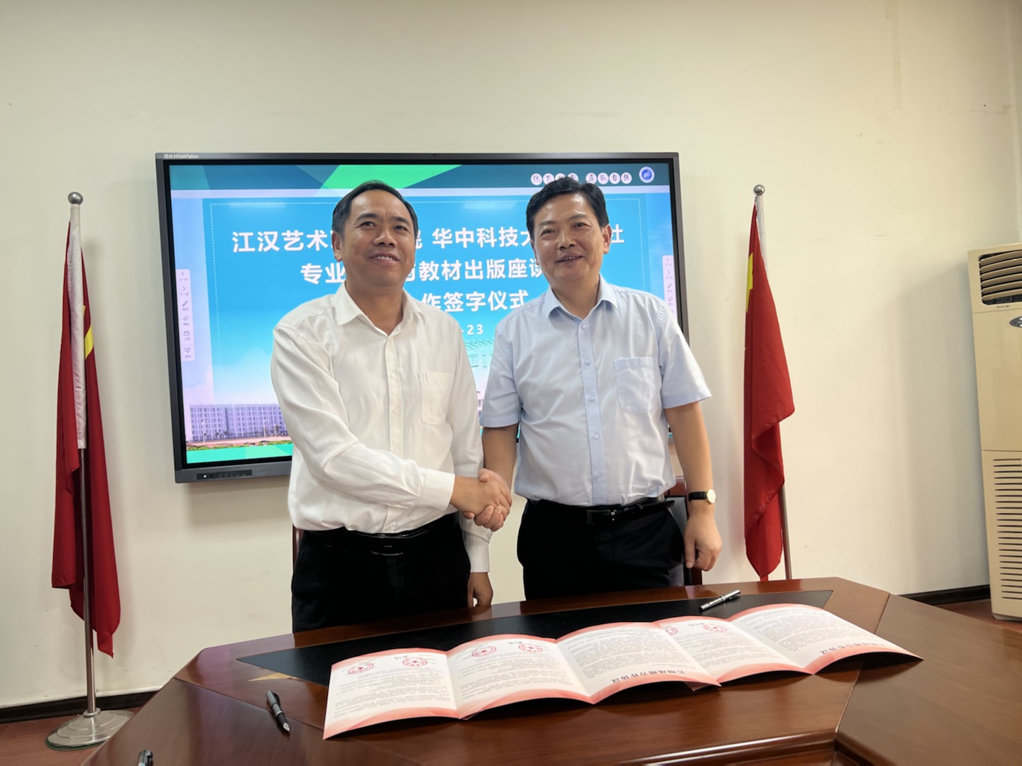 仪式上,校长程伦嵩和华中科技大学出版社总经理阮海洪分别代表校企双方签订合作协议。与会人员还就教材建设立项、编写及推广使用等进行了交流。