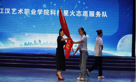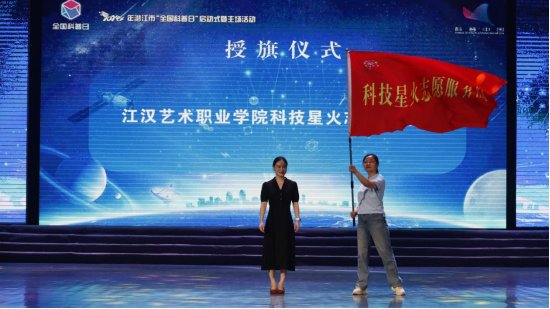 9月14日上午9时,2024年潜江市“全国科普日”启动式暨主场活动在江汉艺术职业学院风华楼剧场隆重举行。在启动式上,“江汉艺术职业学院科技星火志愿服务队”正式授旗。“科技星火志愿服务队”队长、科研处处长罗俊接“中国科技志愿服务”队旗,标志着“科技星火志愿服务队”正式开始履职。